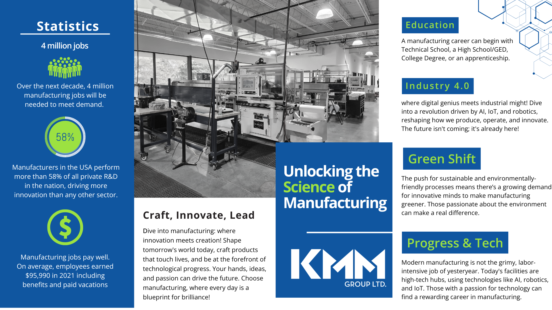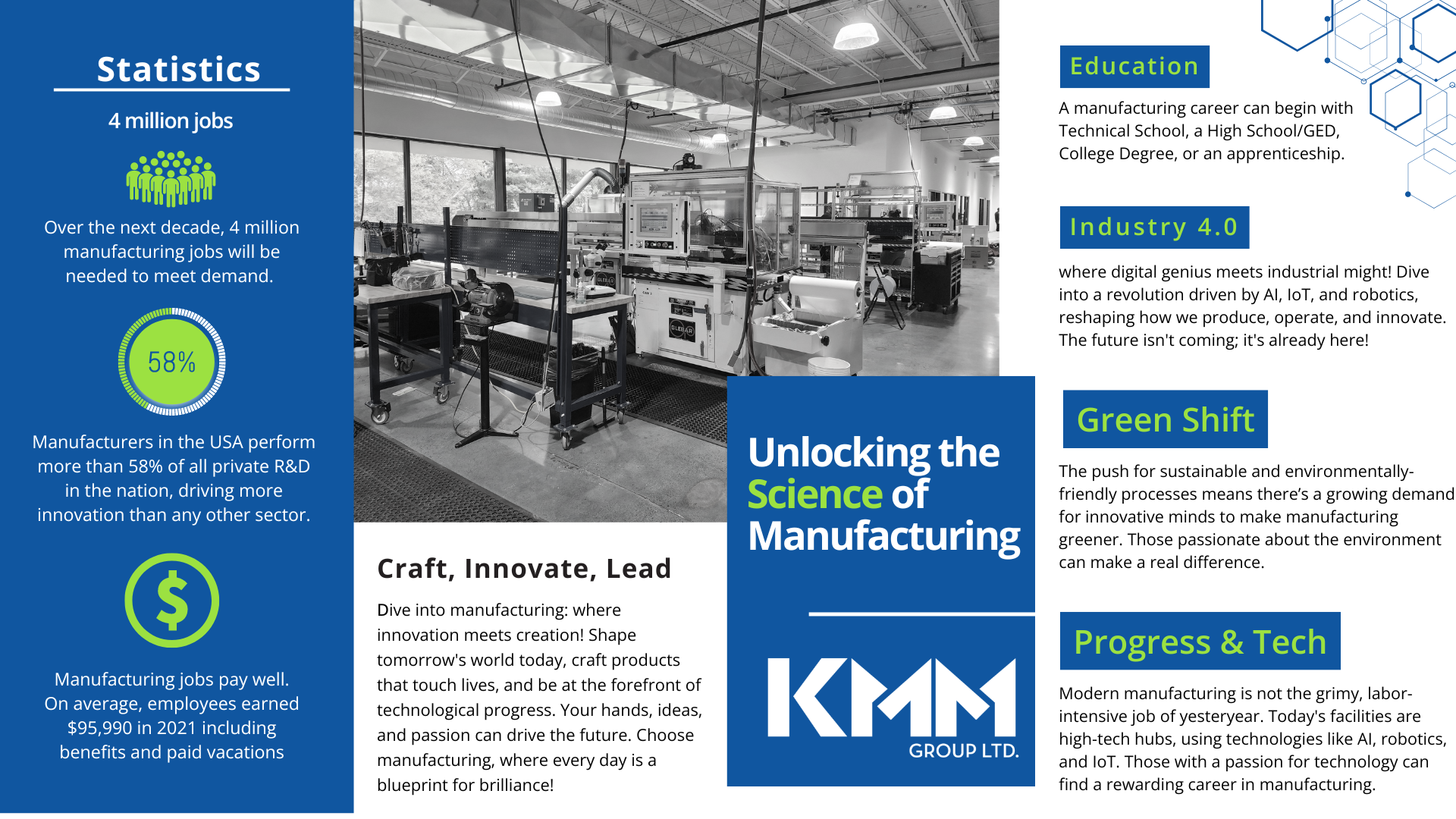 Manufacturers are expected to fill 4 million high-skill, high-tech, and high-paying jobs over the next decade, and KMM Group is joining the movement to help expose students to these exciting career opportunities. What does modern manufacturing facility look like? We invite you to join us for a tour of our brand new state-of-the-art advanced manufacturing headquarters, where students will have the chance to interact with employees representing various career positions in manufacturing, including CEO, Engineer, CNC Machine Operator, Quality Manager, Operations Manager, and Front Office Operations.