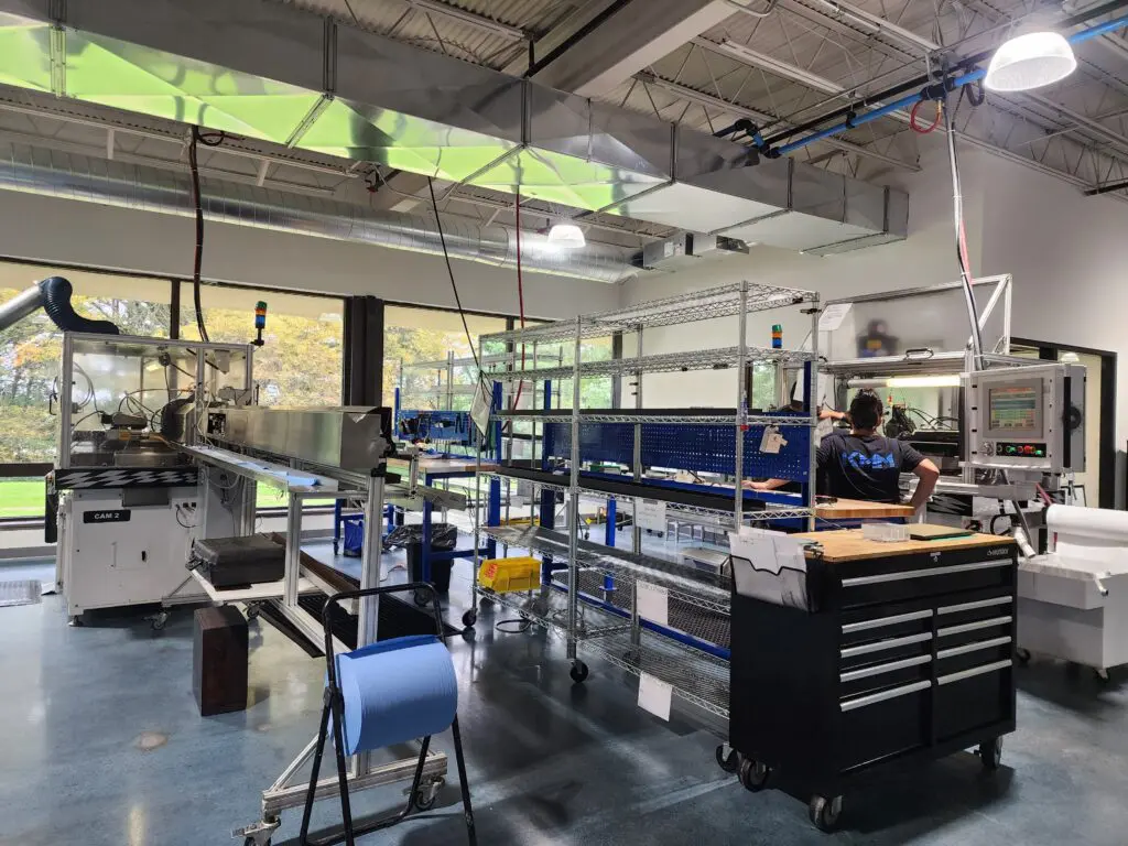 Spanning nearly 100,000 square feet, KMM’s new facility has over 100 milling, turning, grinding, and EDM machines, an ISO Class 8 cleanroom, and 4,000 sq. ft. of dedicated R&D space, allowing the company to handle more complex and diverse projects. The facility also features tech-smart conference rooms, an employee gym, a modern cafeteria, quality control areas, and an automation sandbox to foster creativity, collaboration, and productivity, reflecting the company’s operational and cultural values.
